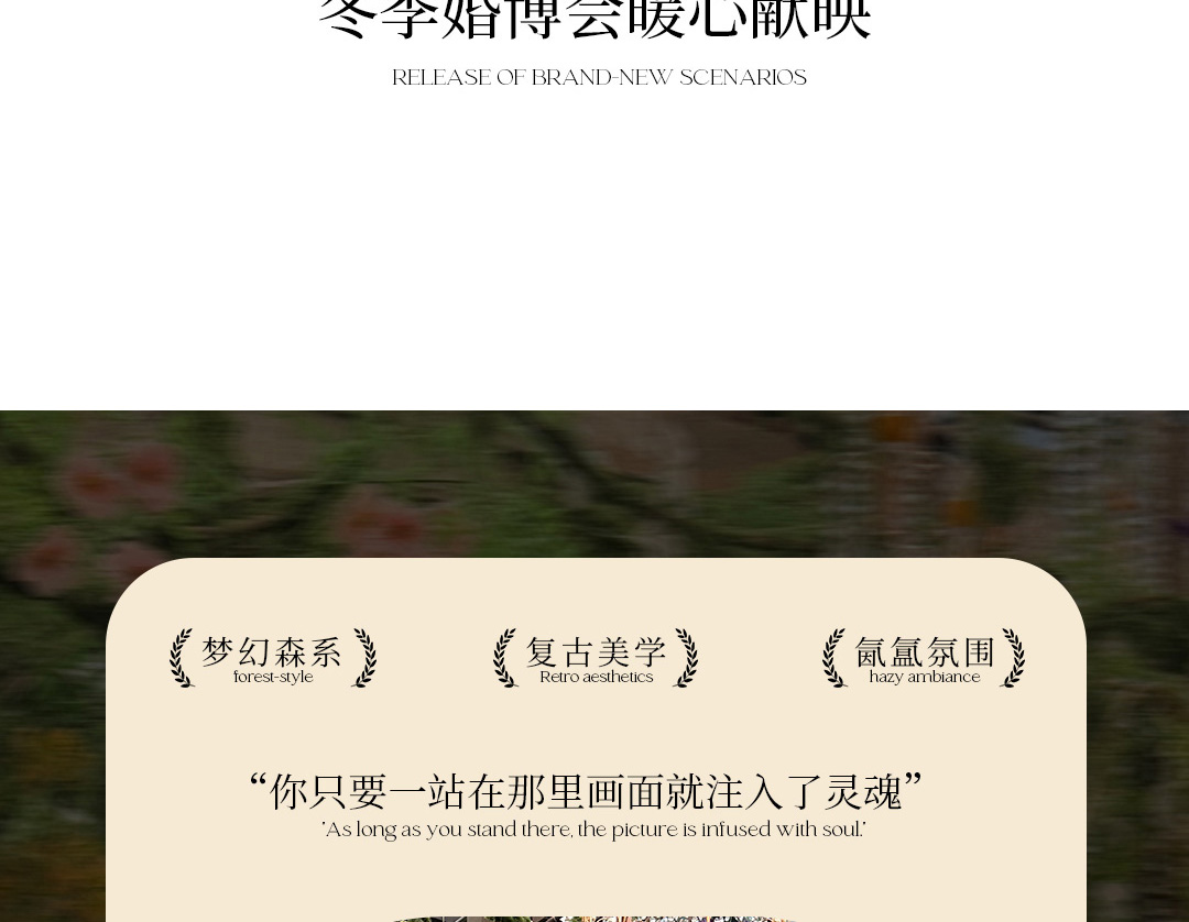 传承肖像馆 东方锦玺馆 莫奈花园 公主馆 印象美学馆 露娜花园 秘密花园 丁达尔花园 东方园艺馆 环球旅拍馆